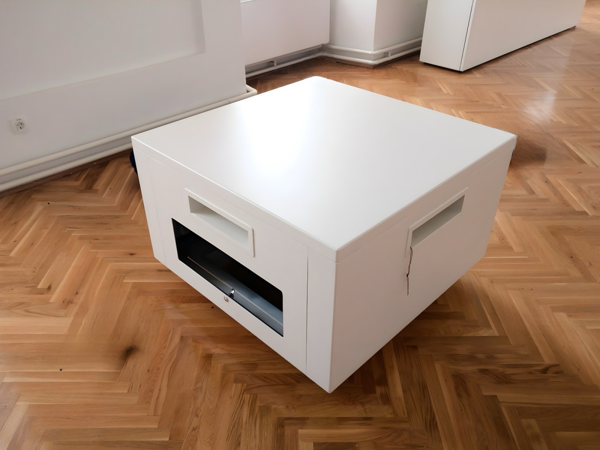 Naše metalne vitrine izrađene su od čelika i kaljenog stakla, što im pruža iznimnu čvrstoću i dugotrajnost. Površine se mogu plastificirati u željeni RAL ton, a po potrebi ih izrađujemo i od nehrđajućeg čelika, s brušenom ili poliranom završnom obradom.